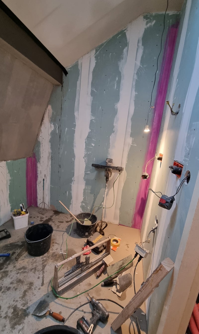 Deze badkamer was een flinke uitdaging met een schuine kap. Er is een dakraam geplaatst, het plafond in het schuine gedeelte is iets verlaagd zodat de verlichting er mooi in valt en er is een afzuigsysteem in verwerkt. Er is een scheidingswand in geplaatst zodat er een inloop douche is ontstaan. Door het creatieve brein van Richard's Vakwerk is deze badkamer zo ingedeeld dat er zelfs een ligbad in geplaatst kon worden. Zo is deze badkamer super luxe geworden en van alle gemakken voorzien.
